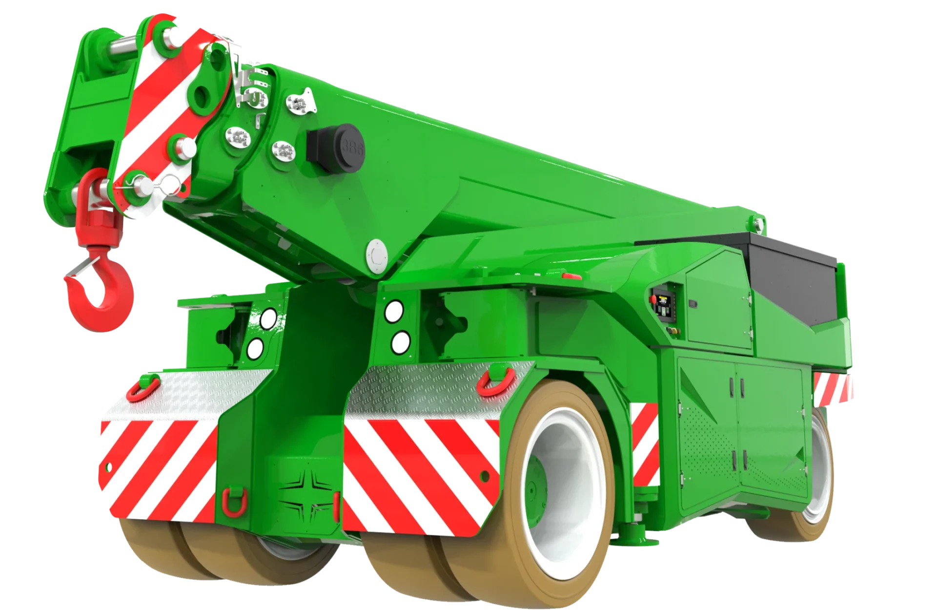Grúa radiocontrolada de alta capacidad, ideal para tareas pesadas en espacios limitados.